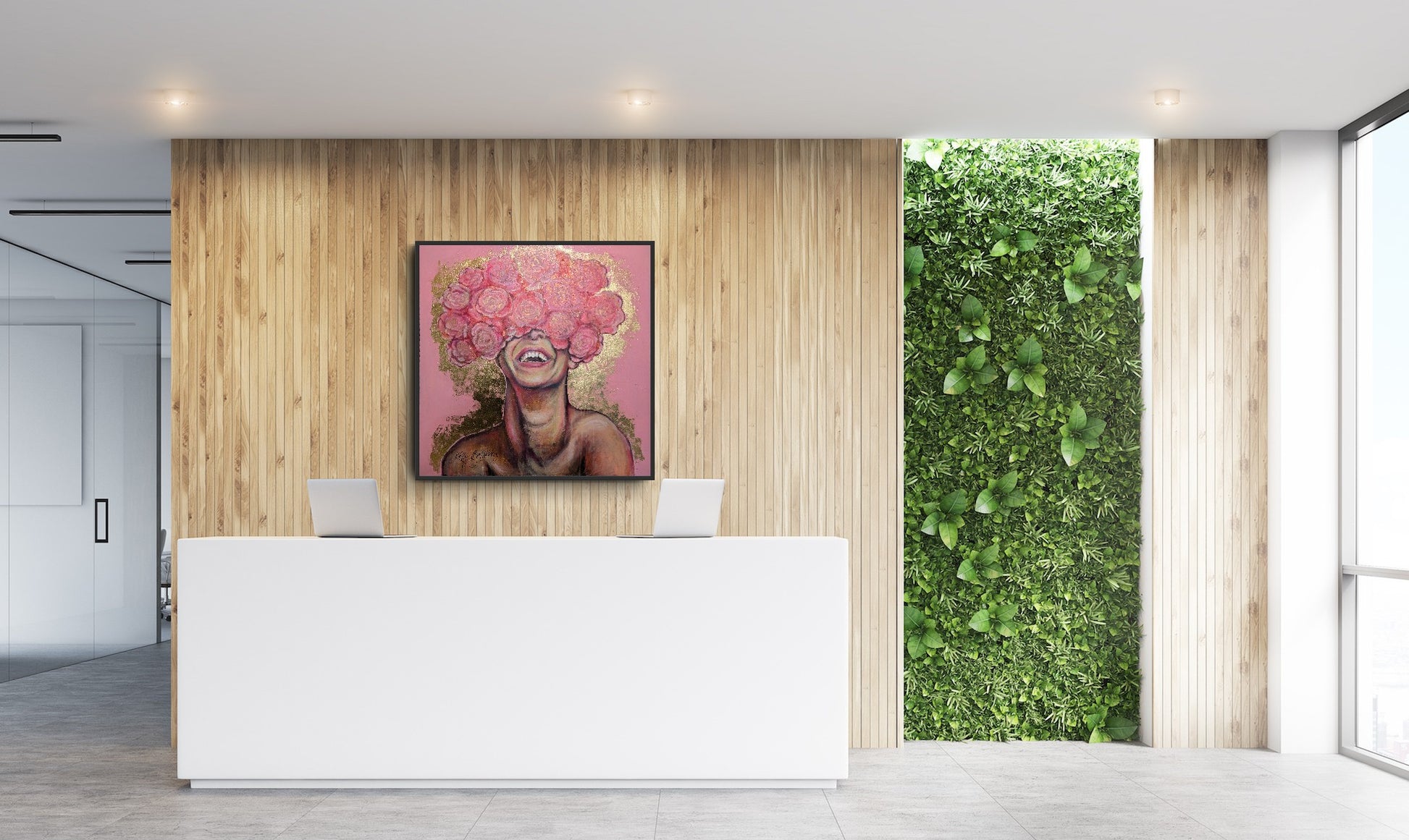 Rosy Revelry tells a story of transformation and celebration - a declaration of self-acceptance and the bold act of choosing joy in an unpredictable world. This piece is perfect for art lovers seeking an uplifting, statement piece with layers of depth and meaning.